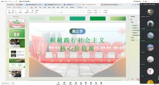 刘慧芳、吴红分享了教材第四章第节《社会主义核心价值观的显著特征第三节《积极践行社会主义核心价值观》的备课成果。刘慧芳从先进性、人民性、真实性三个角度,讲述了社会主义核心价值观的显著特征。展示过程中,刘慧芳从人类社会发展规律、中国百年的历史巨变,揭示了社会主义核心价值观的先进性;从尊重人民的历史主体地位、以人民为中心的价值取向揭示了核心价值观的人民性;从社会主义国家和人民的实践,揭示了社会主义核心价值观的真实性,揭露了西方普世价值观的虚伪性。