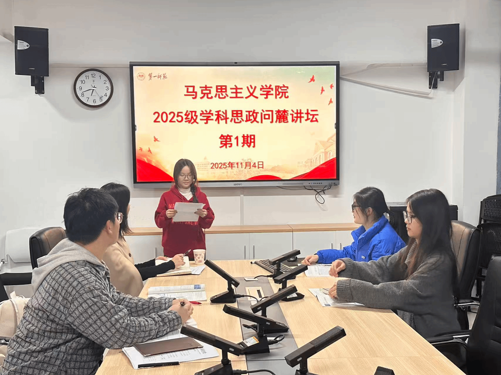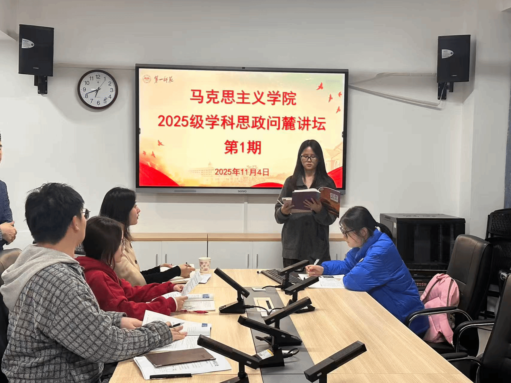 为提升2025级学科思政专业硕士研究生对高中政治教材的理解与教学实践能力,11月4日下午,w66旗舰厅于百熙楼1010会议室举办“思行先锋”之首期“问麓”讲坛,聚焦“新民主主义革命的教学设计”,由陈攀文、刘慧芳老师指导,该专业全体硕士研究生参与。